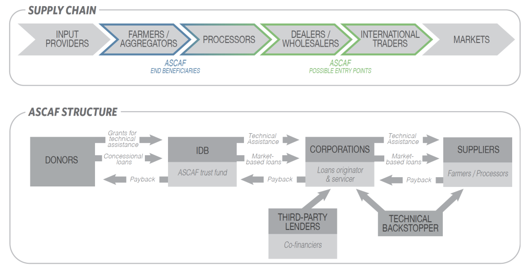 The Agricultural Supply Chain Adaptation Facility (ASCAF) works through Multilateral Development Banks, who would partner with agribusiness corporations and work through their supply chains to reach small to medium-sized farmers in developing countries. With donor backing, The Facility would enhance Multilateral Development Banks’ and third-party financiers’ comfort in lending to these farmers, and support the development of technical assistance measures. In doing so, The Facility would address small to medium-sized farmers’ lack of access to medium- to long-term finance and capacity for investments in climate resilience.