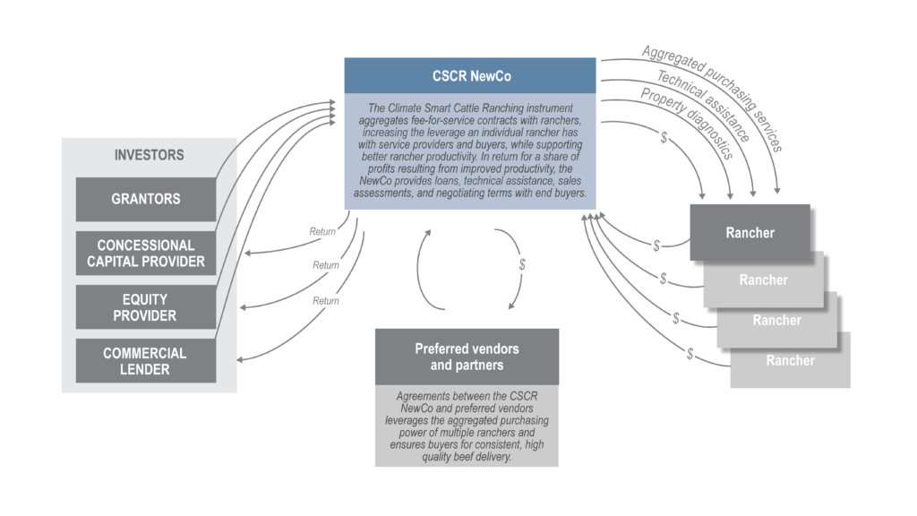 Through the Climate Smart Cattle Ranching initiative, Naturevest and the Nature Conservancy provide an innovative business model for cattle ranchers to adopt more sustainable and efficient practices. The initiative will establish a “New Company” to provide loans and technical assistance to ranchers on the condition that they adopt Embrapa’s Good Agricultural Practices and comply with Brazil´s Forest Code.