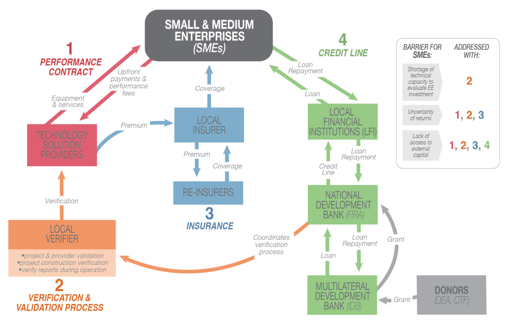 Technology solutions providers will purchase the insurance to back their contractual guarantees to their SME clients on the performance of their energy efficiency products.