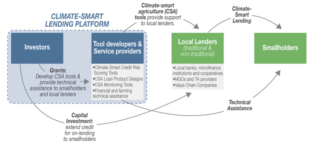 The Climate-Smart Lending Platform will bring together the tools, actors, and finance necessary to reduce climate risk in lending portfolios and scale up climate-smart lending to smallholders globally.